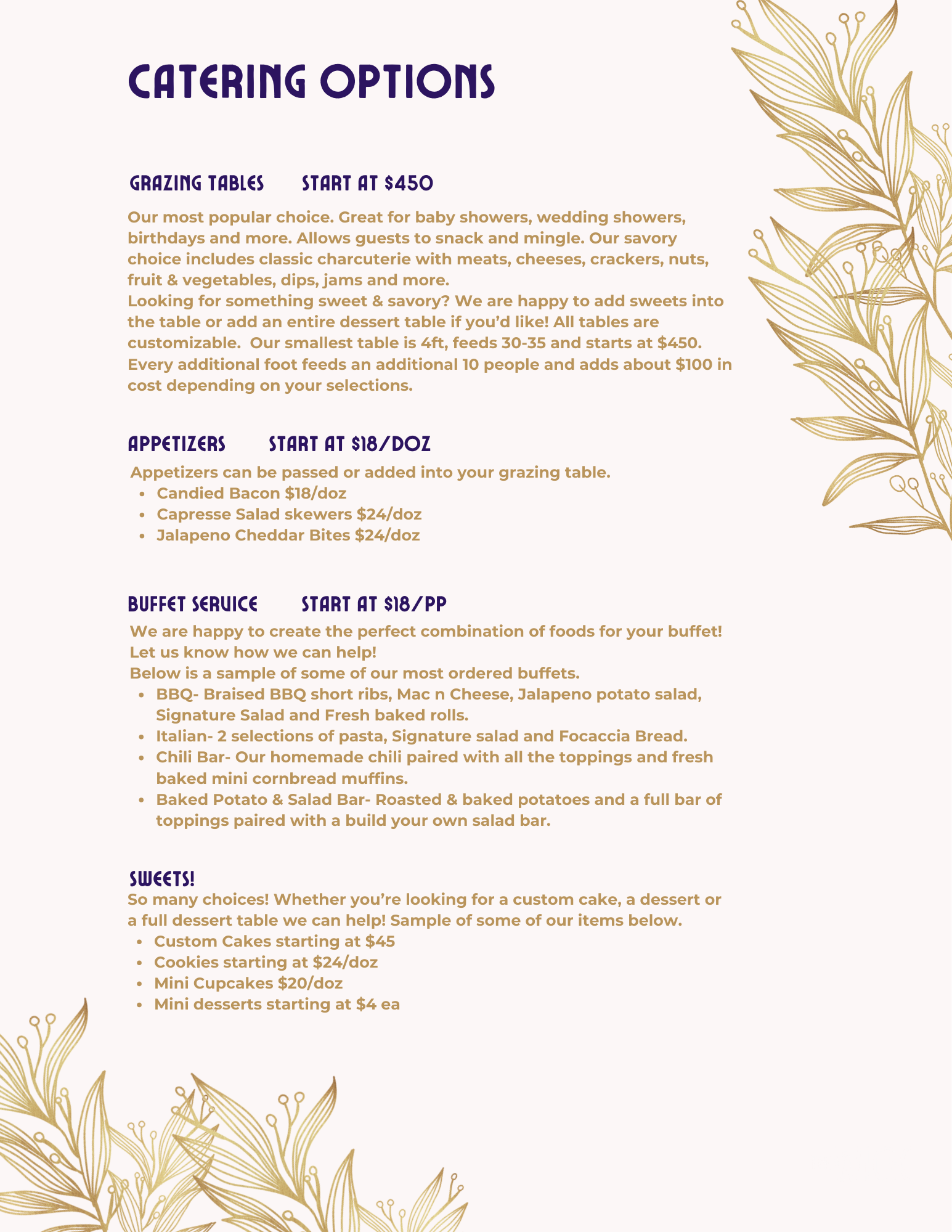 Offsite catering must be arranged a minimum of 72 Hours In Advance. We Do Not Accept Catering Orders Online.